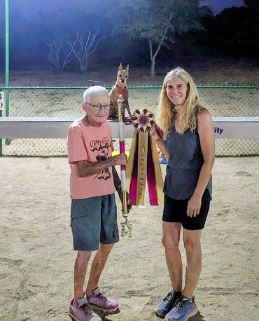 Shiela is a rescue nearly killed by coyotes. Now she is at the Masters Level in AKC.
